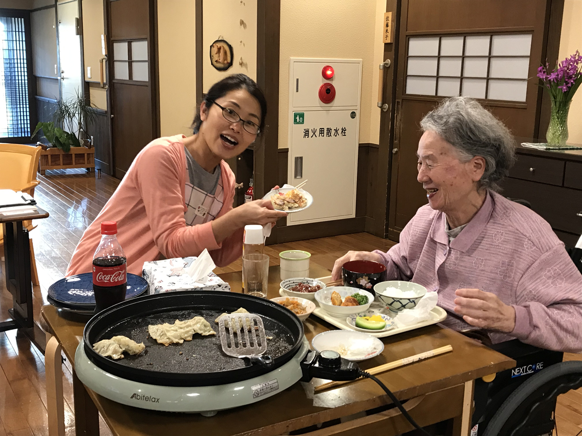 より在宅生活に近い生活環境の下で、入居者個々の意思および人格を尊重し、入居者本位で安心・安全・快適な生活が送れるようにしています。施設内の生活にとどまらず、地域住民の一人として生活していただけるようユニットを越え、他の入居者との趣味活動を通じての交流や地域行事への参加を行っています。